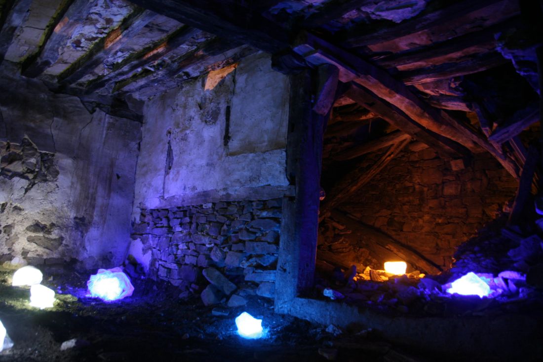 A journey through forgotten geographies. Inhabited a long time ago and then lost in obscurity in the hands of nature and time. Architectures in the process of fossilisation. Companions of the soil and friends with the plants and stones. The project of LumiereScene & SpaceCircles travels through the landscapes of Spain. It is about to find and live in these lost places during the day and to embrace the space with light installations at night. The photo shows ‚Santa Maria de Cameros‘, an abandoned village after a rural exodus 70 years ago. These places demand the right to remember their people, their way of life and their relationship to nature – in the fight against oblivion. At present it is inhabited only by horses and by this project of fleeting and ephemeral lights.